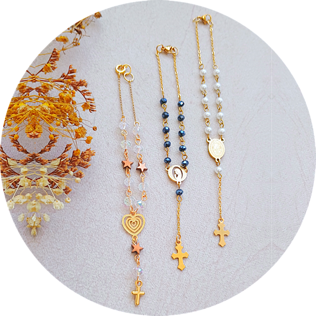 Las pulseras denario vienen en una variedad de estilos y materiales, desde cuentas de madera hasta piedras preciosas, y pueden estar adornadas con encantos significativos como cruces o medallas de santos. Su diseño elegante y discreto las hace adecuadas para llevarlas en cualquier ocasión, ya sea como una declaración de fe personal o simplemente como un accesorio de moda.